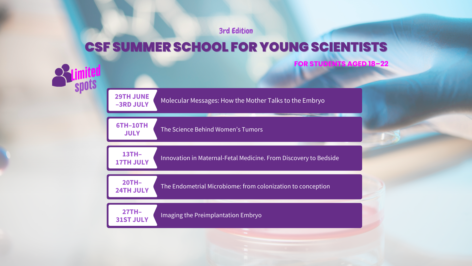 July 20th – 24th. “The Endometrial Microbiome: From Colonization to Conception” Group: Endometrial Microbiome in Human Reproduction. PI: Inmaculada Moreno